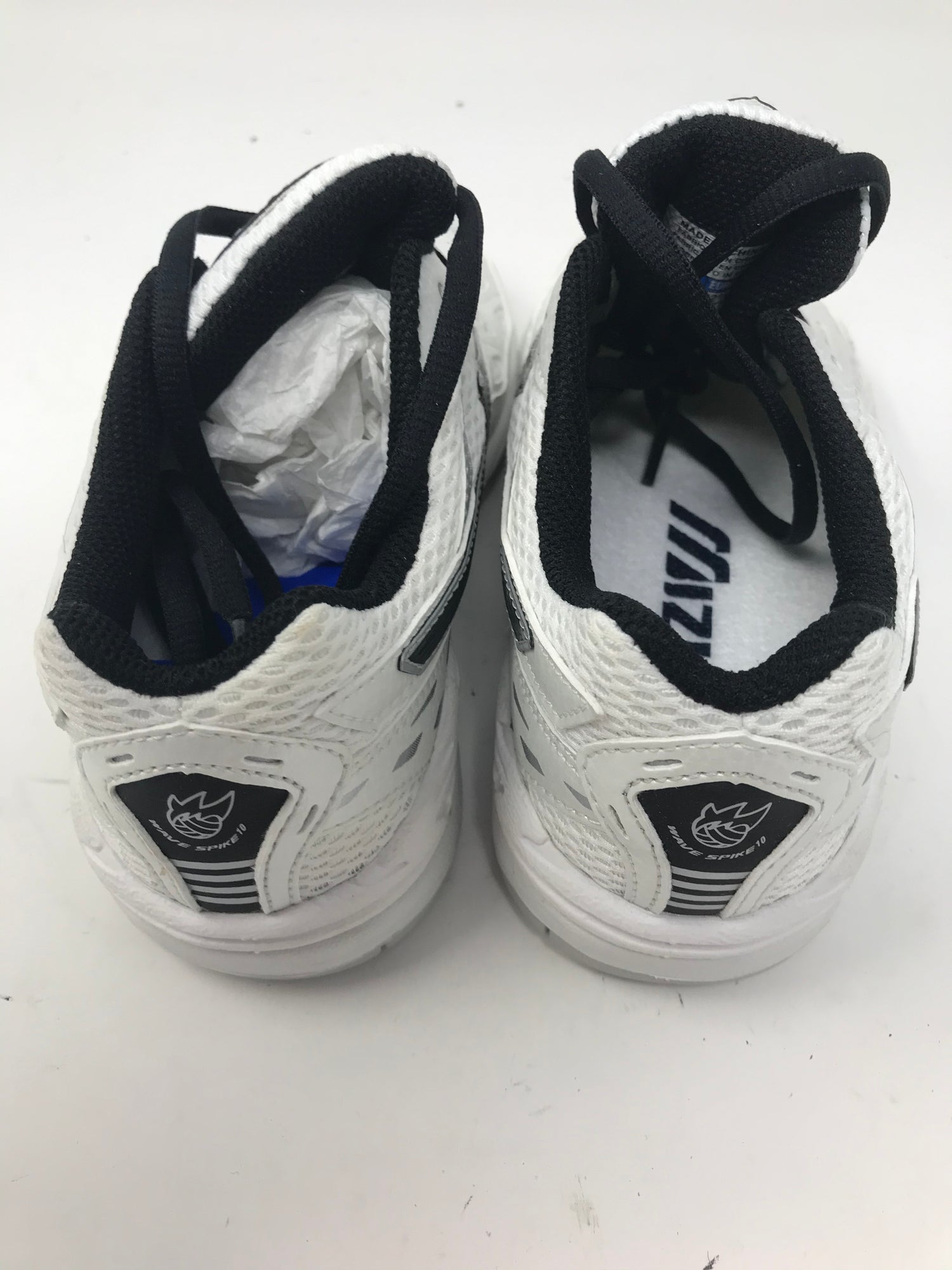 This is a New Mizuno Wave Spike 10 Jr. Volley ball pair of shoes! In the factory box and never worn, this is a high quality pair of shoes. Womens! Textile and synthetic, rubber sole and a seamless upper for improved fit!